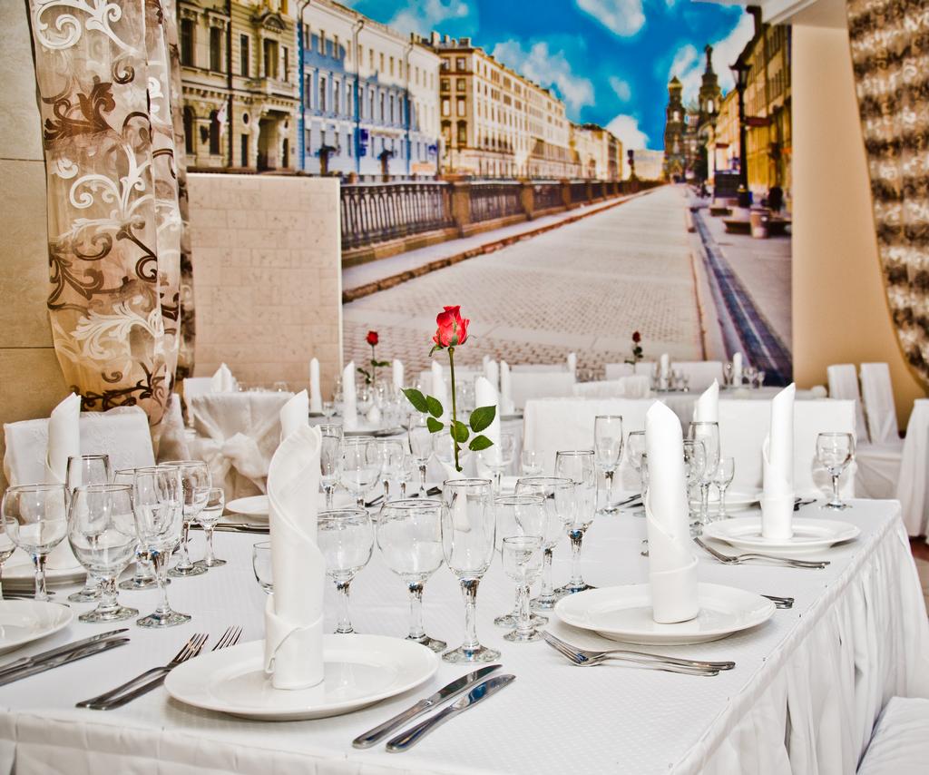 К услугам гостей и посетителей гостиницы «Россия» 2 собственных банкетных зала, рассчитанных на одновременный приём до 150 гостей.